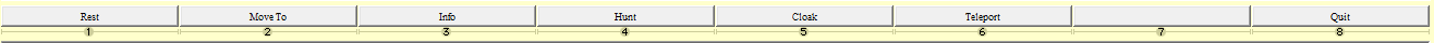 The action buttons are used for most of the decisions in Phantasia, so you'll be pushing them a lot. To make things easier, the numbers 1-8 on your keyboard can be used in place of are aliases for any of these buttons as long as the cursor is not in the input field in the chat area. The function keys will do the same thing and will work in the chat input field. You can also use the space bar to hit the left-most active button. Button 7 is replaced with different options as you progress in the game, starting with "Help" which tells you information that is good for you. "Enact", "Decree", "Intervene", "Command", which are the powers of the Steward, King/Queen, Council and Valar.